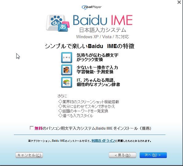 Baidu IME。日本語入力システム。今のところ、このメッセージが出てもインストールはしていません。
