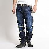 - 【ジョニア ジーンズ】 JONEAA JEANS PU使い刺繍デザインジップヴィンテージ&ダメ.../作者不明