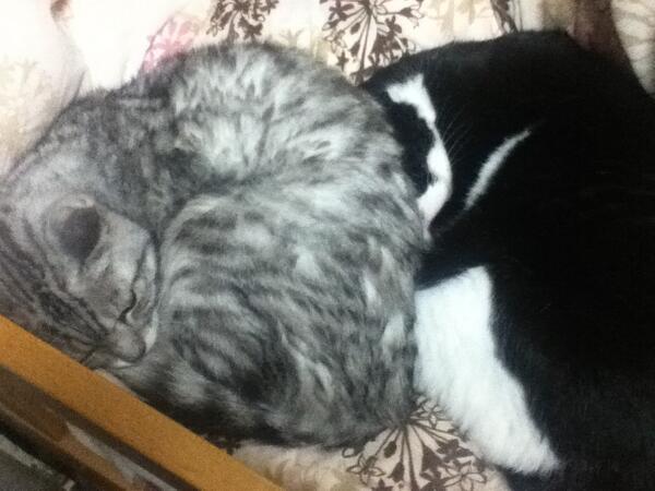 すごい心地よさそうに寝てるけど俺の足のうえで動けねええええ( ゚д゚)しびれてきたぁあああああああ pic.twitter.com/mrKP7vWeFy
