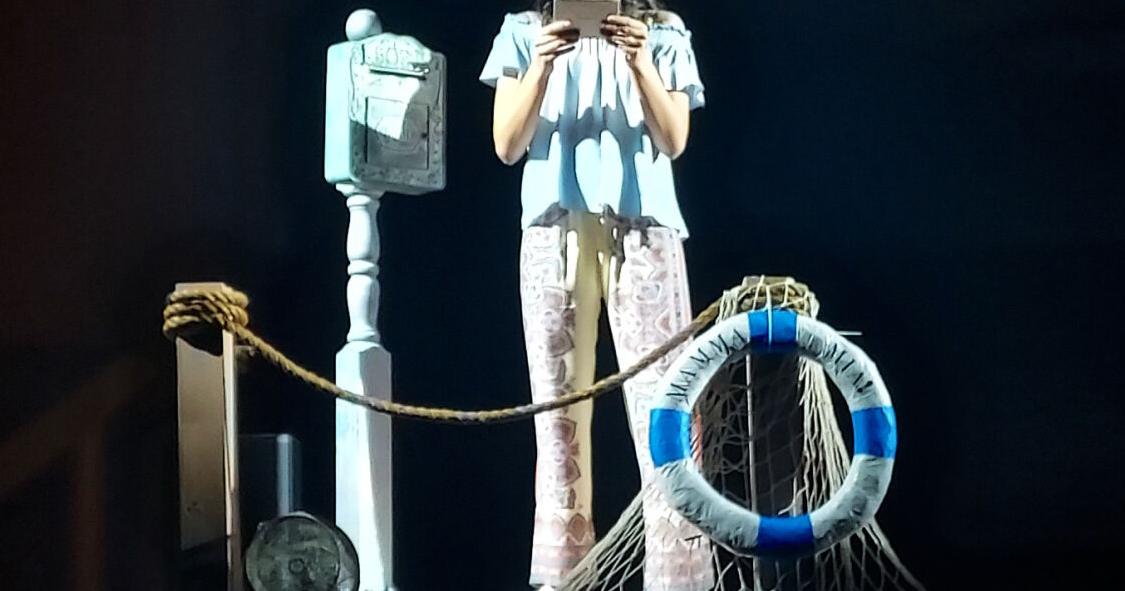 *10年生のアナソフィア・ビッカリが、『マンマ・ミーア!』でソフィ役を演じ、結婚式の前に知らなかった父親を探すための手紙を一連に郵送する準備をしています(デイビッド・ダイ | ヘラルド)。