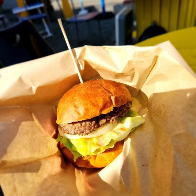 ある日はバイクでアワイチした時に五色のフィッシュマルイバーガーに
