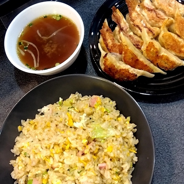醤油ラーメンがブラック醤油やっていうんで醤油ラーメンで餃子セット