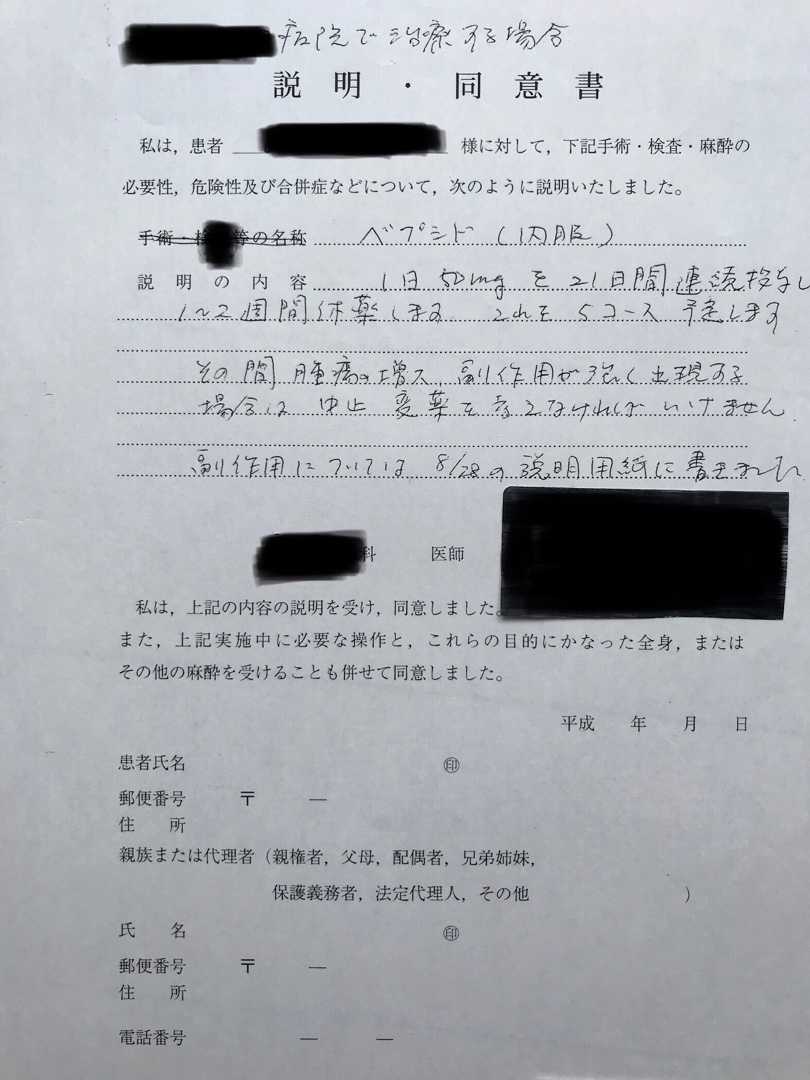 手術 麻酔の同意書を説明用紙と一緒に渡してきた。これにより患者家族は恐怖を感じた。