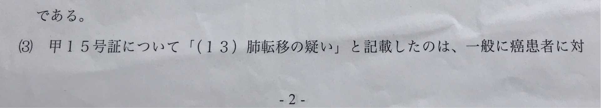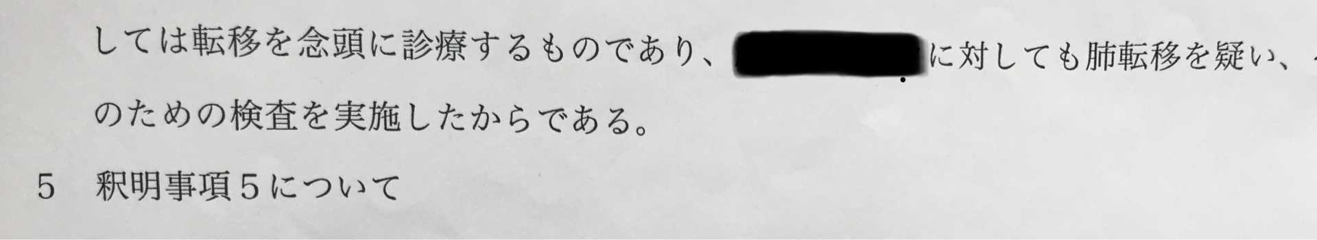 この時、病院側は「一般に癌患者に対しては転移を念頭に診療するものであり、患者に対しても肺転移を疑い(省略)検査を実施した」と回答した様に
