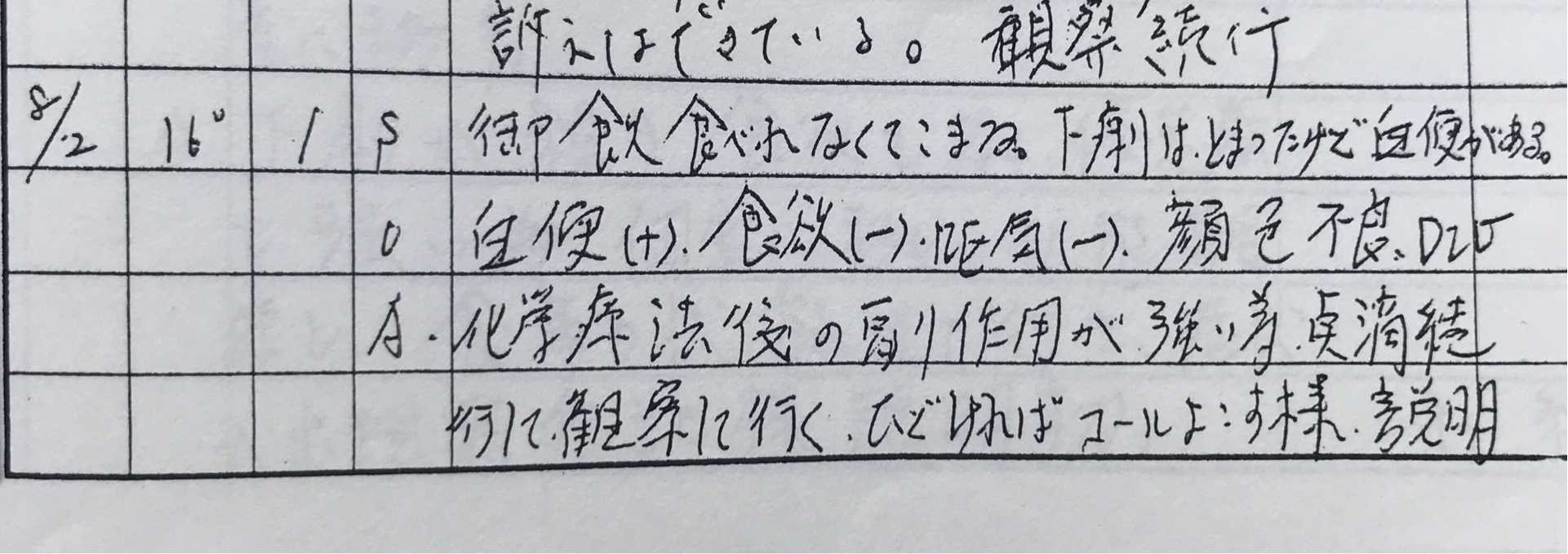 抗がん剤治療開始後、既に患者には血便があった。患者は糖尿病でもあり 血管がもろいと認識していた医師Aは自らの医療ミスによる骨髄抑制が始まる8月9日に備えて万全の体制でいたはずだ。
