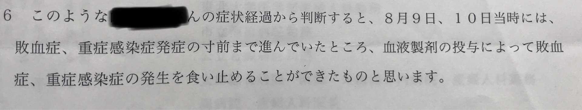 医師Tは「敗血症、重症感染症を起こすことが必至であると判断したと言う」