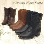 ウエスタンブーツ/レディース/ショートブーツ/ポインテッドトゥ/ローヒール