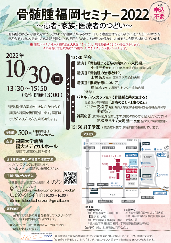 「骨髄腫患者と家族の会福岡オリゾン」です。