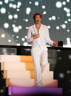 - 2006年、ソウル・ワールドツアー・プレミア公演でのRain。Rainは最近、個人企業をめぐる問題が取りざたされている。ほぼ同じ時期、SKテレコムのCM契約も更新されなかった。