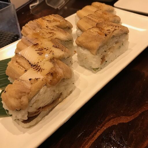 お店の名物、炙り鯖寿司と穴子の棒寿司。