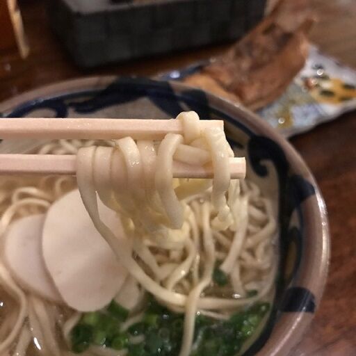 沖縄そばは少し平麺タイプ。