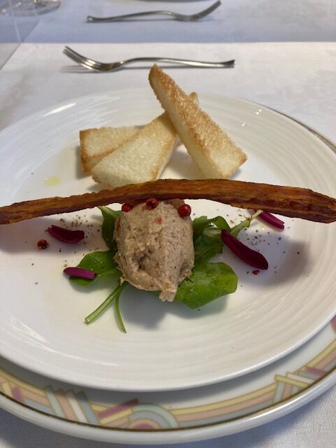 冷製オードブルは京もち豚のリエット カリカリパンチェッタ添え。