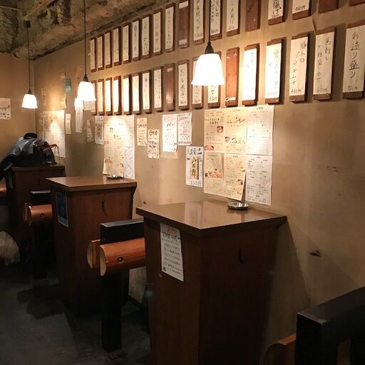 立ち飲み屋さんだけどカウンターもあって腰掛もあって。