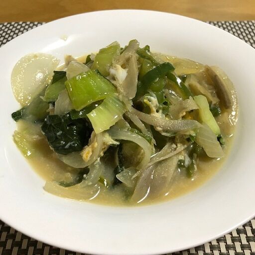 しんなりしてきたら☆を加えてひと煮立ちさせる。