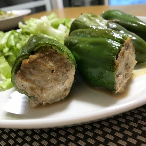 ピーマンが丸ごと食べれる肉詰めです。