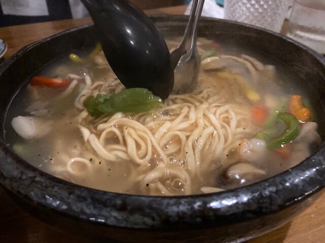 スパイシーなあんかけにパリっと焼き上げられた太めの麺。。