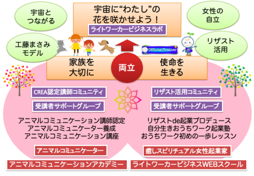 そんなご自身のビジネスでの経験を、癒し女性起業家さんのお役に立てれば。と始められたのが、もう1本の柱、ビジネスの仕組み作りをお伝えする「自分生き♡おうちワーク起業塾」です。