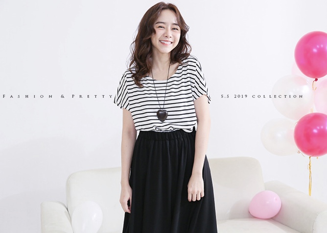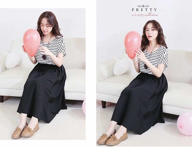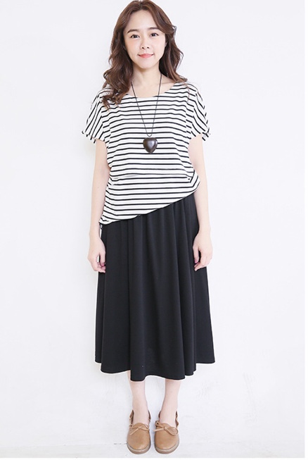 スカートはゆったりサイズで、ウエストはゴムで、良く伸びるのでマタニティ期も着用可能です。