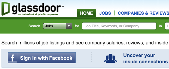 Facebookに統合されたサイトである、Glassdoorに関係する二番目の例を見てみましょう。