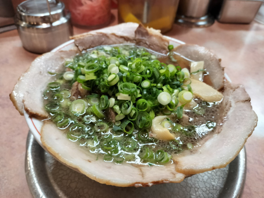 ネギの下にはサイコロ状のチャーシューも入っていてボリューム満点!!!どうやら神戸本店だけにしかサイコロ肉は入っていないとの事。かなりオススメです!!!