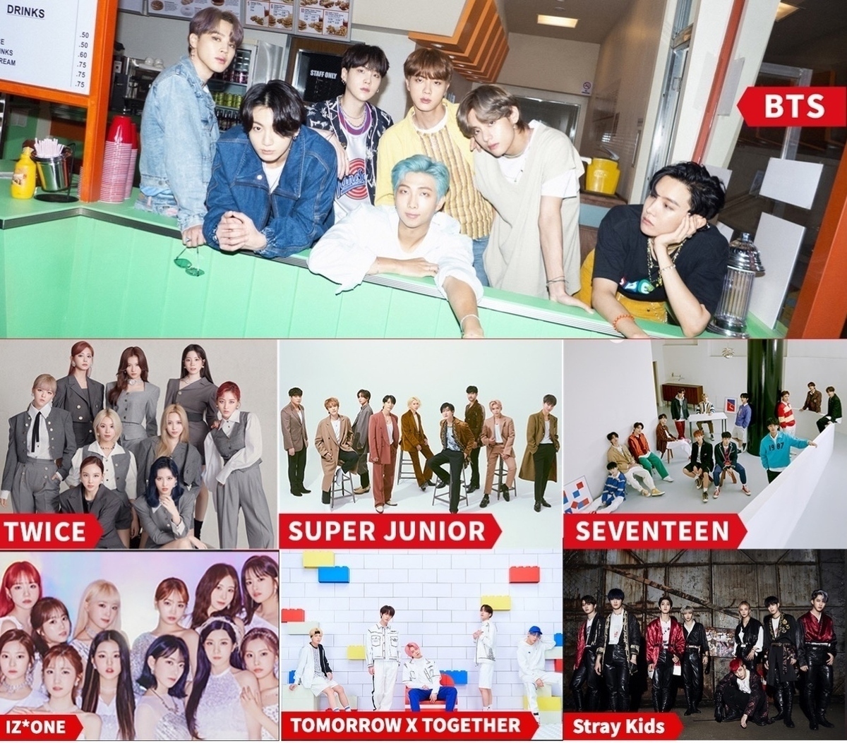 BTSのほか、Super Junior, Nu'est, GOT7, Seventeen, MostaX, Twice, MAMMOO, Kang Daniel, I*Zone, The Boyz, Stray Kids, Ateez, TXT, Itzy, Cravityなど19組が豪華ラインナップ。