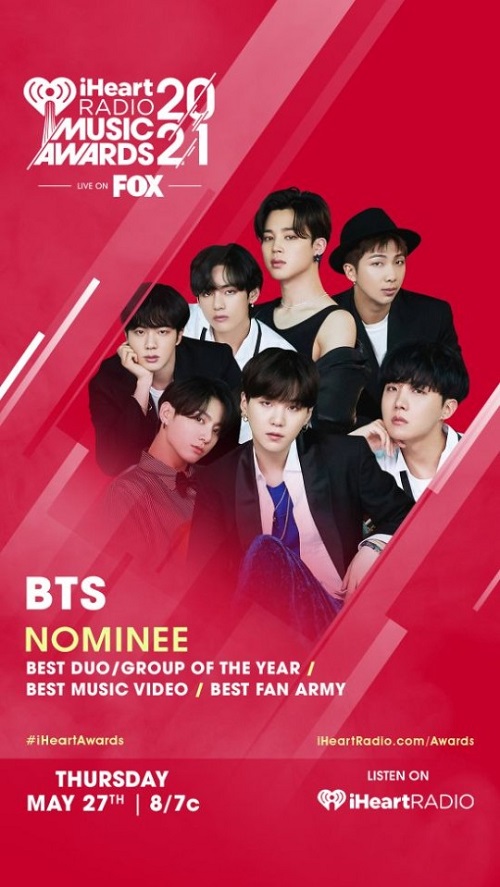 BTSがアメリカのラジオ局主催のiHeartRadio Awardに3部門にノミネートされました。