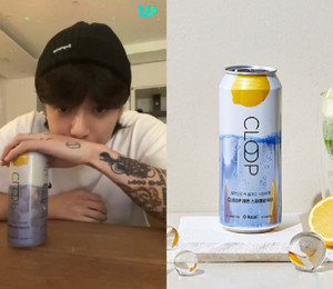 Jungkook was drinking Cloop Lemon Sparkling water.