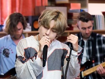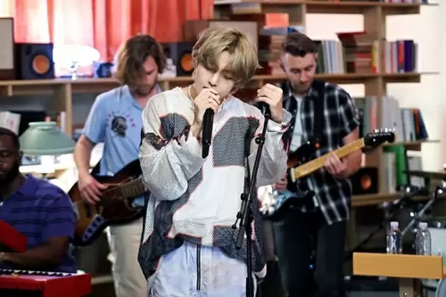 「Tiny Desk Koreaはアメリカ公営ラジオ放送局のNPRミュージックで進行する小規模ライブコンサートシリーズ『Tiny Desk Concert』の韓国版で、Vは2020年にBTSとして出演したことがある。」