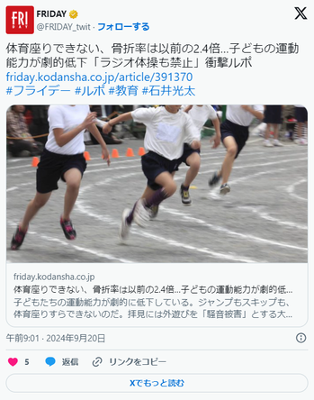 子どもたちの運動能力が落ちすぎて、ラジオ体操をすることによってケガをする子どもが出るようになったからだという。