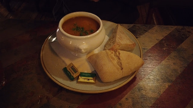 ご注文の際は、ウイルスのためカウンターでご注文いただく必要がありました。 Kはテーブル番号を知りませんでしたが、彼らがそれを見つけるので、それは問題ではないと彼女に安心させました。 私たちはすぐに待つのに飽きて、Kはカウンターに歩いて行きました。 女性は、ラウンドごとに支払われることに加えて、テーブル番号なしで注文が行われなかったと言いました。 何?! 再注文。 私たちが選んだ食べ物は「在庫切れ」だったので、別のものを注文しました。 Kレベストも。 食べ物が届くのを待っていると、女性はスープがあると発表します。
