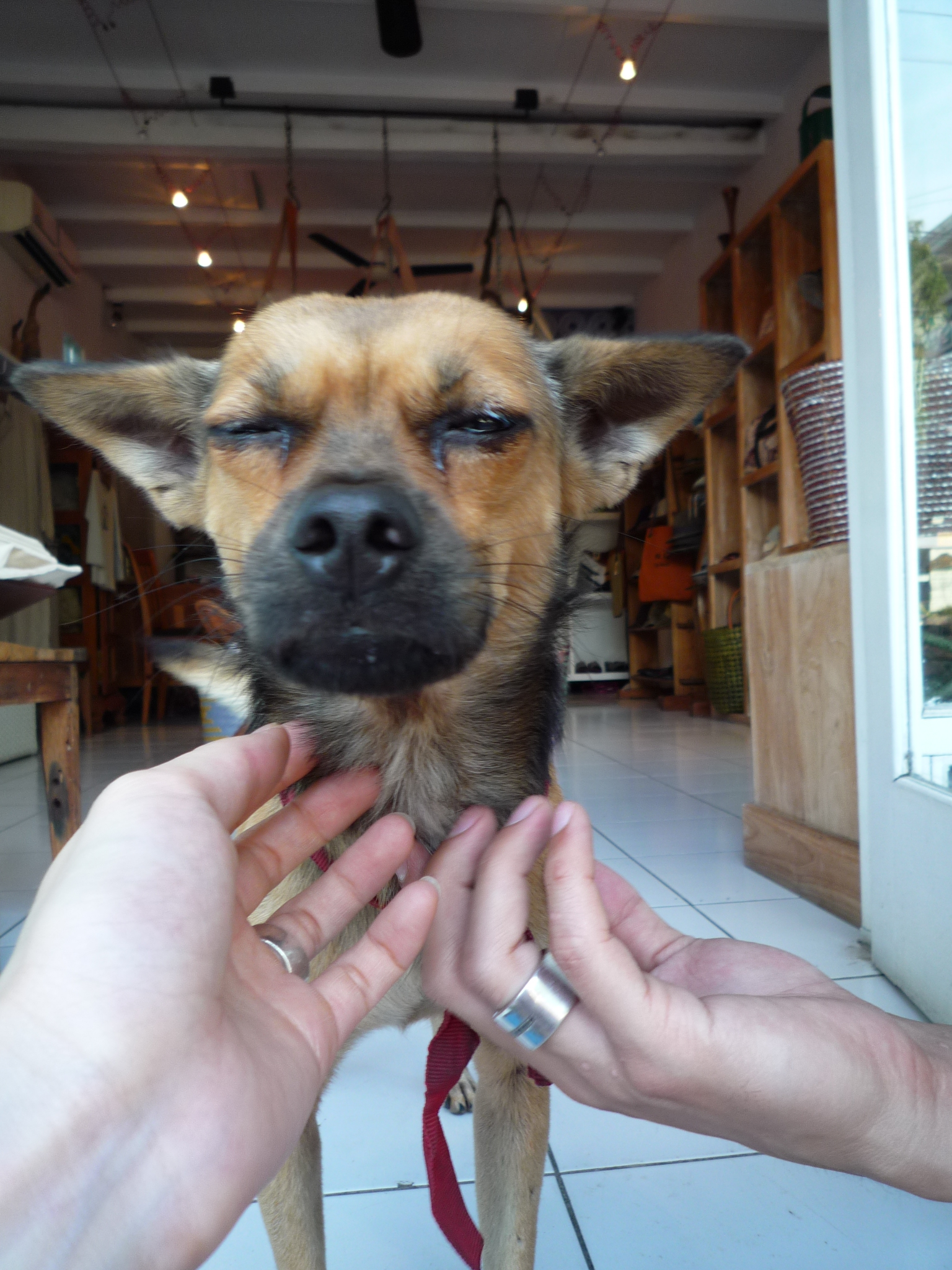 店先で出会ったわんこ。ゆる~い感じでした![]()
