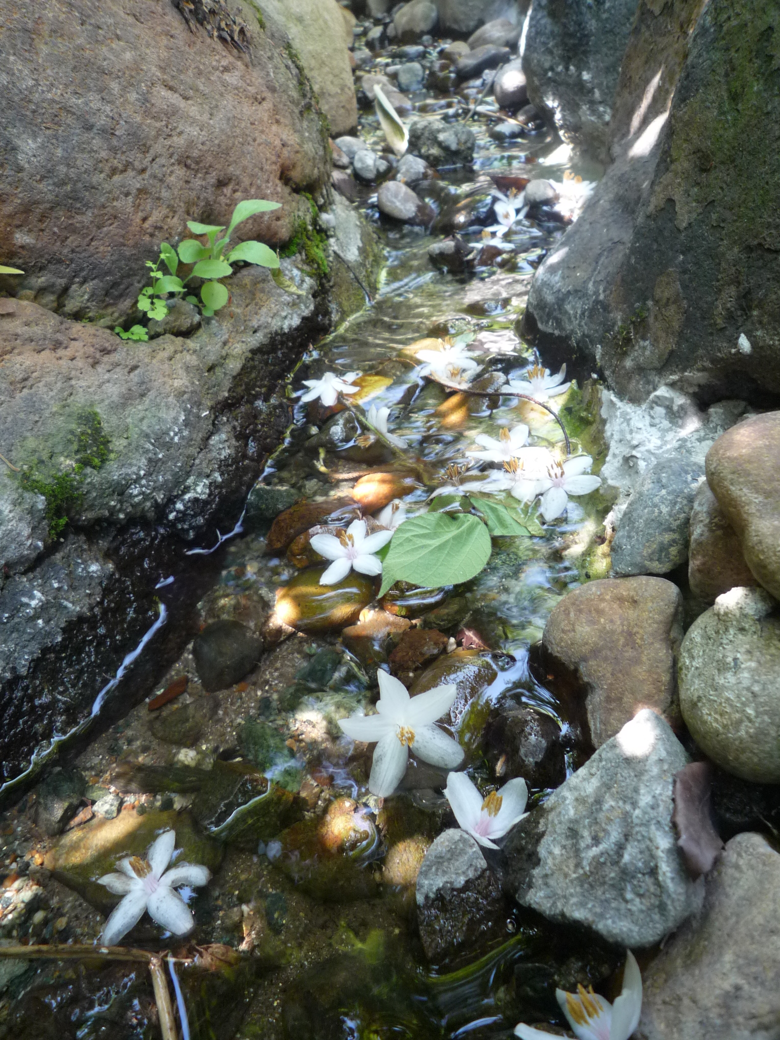 フラワーマーケットでたあとにザーザー降りの雨とピカピカ雷。