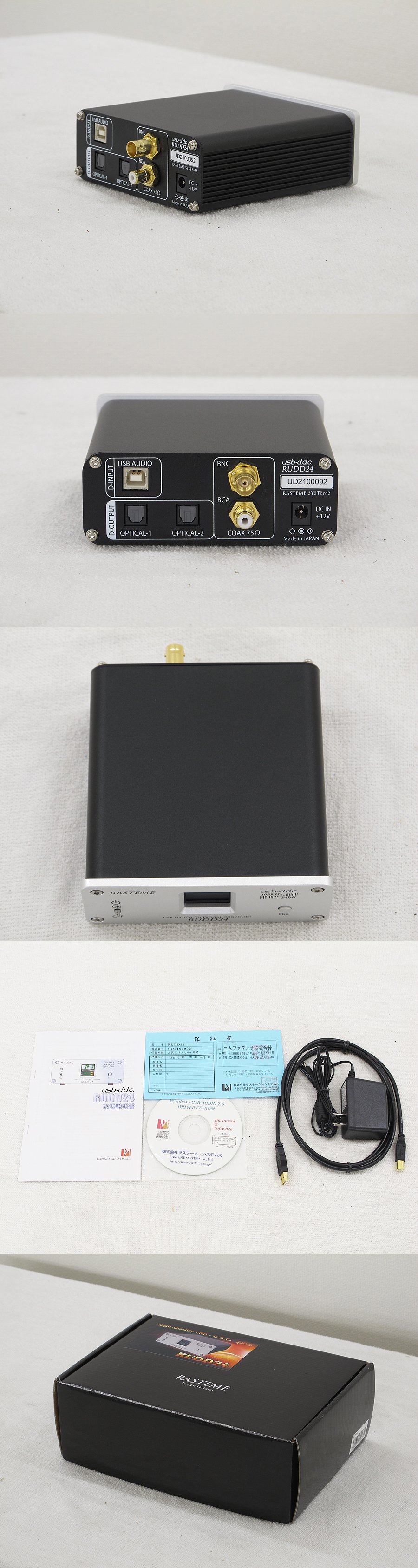 【美品】 RASTEME RUDD24 D/Dコンバーター 保証付 @9447SOLD OUT価格:32,000円(税込)商品は本体、取扱説明書、ディスク、ACアダプター、USBケーブル、保証書です。保証期間は2013年4月21までです。動作確認済みです。外装は使用感も少なくキレイな状態です。ショールームで試聴出来ます。※オリコのショッピングクレジットがご利用出来ます。