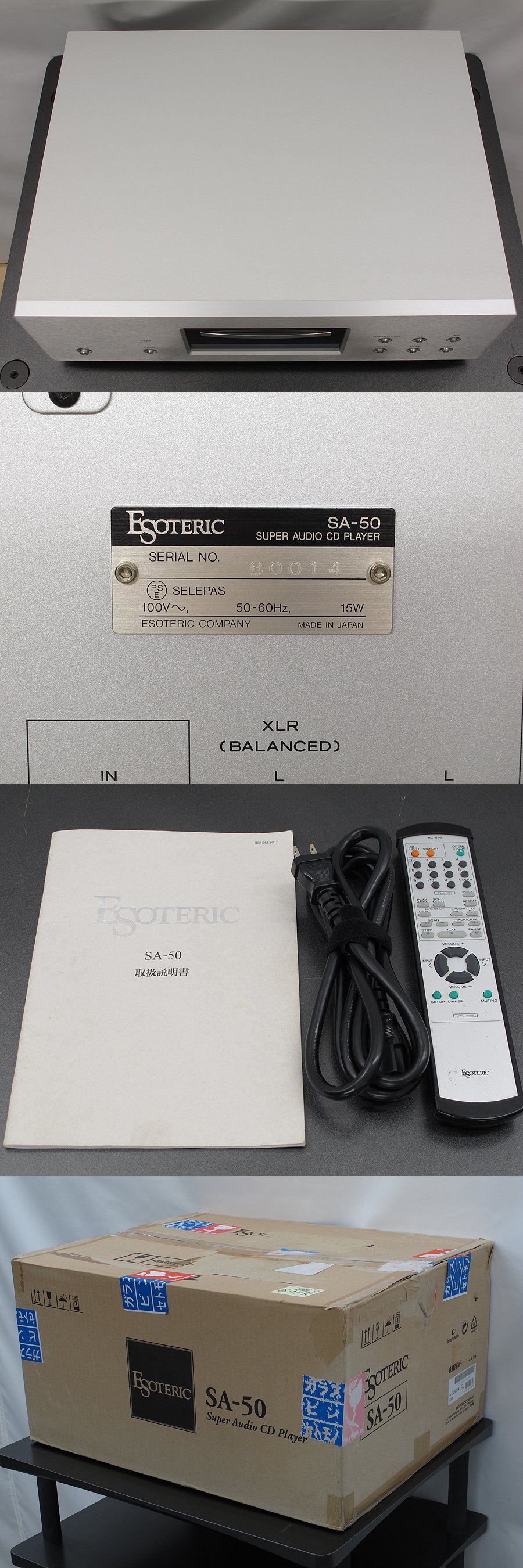 エソテリック ESOTERIC SA-50 SACDプレーヤー @187301MSOLD OUT価格: 275,000円(税込)商品は本体、元箱、取扱説明書、リモコン、電源ケーブルです。動作確認済みです。外装はについて、若干の使用感はありますが、目に付くような傷や破損などはありません。比較的綺麗な状態だと思います。(画像参照)