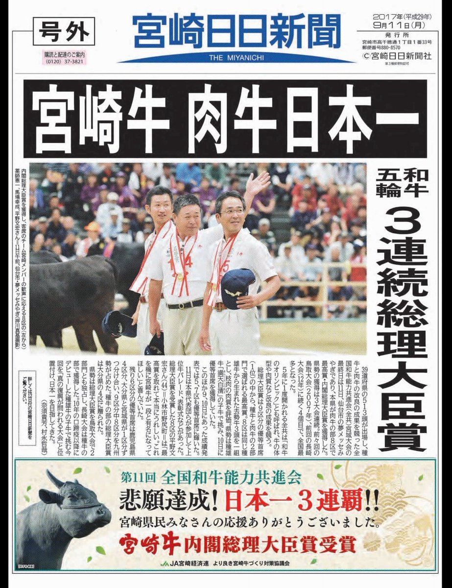 宮崎牛が史上初の三連覇!!!![]()
