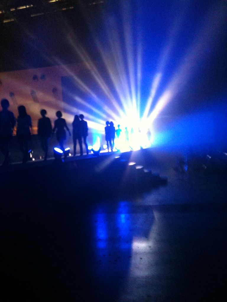 上はリハ中の写真ですが、総勢40名のモデルが一斉にウォーキングする