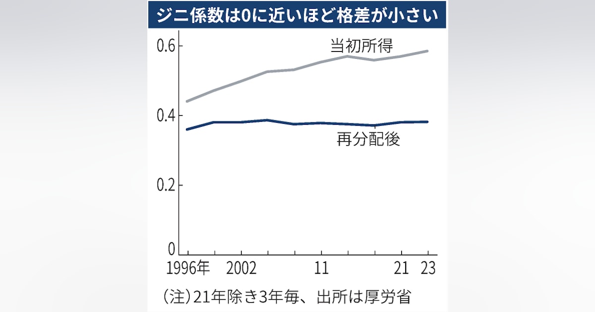 所得格差のジニ係数、再分配前は過去最大 高齢化で23年0.58