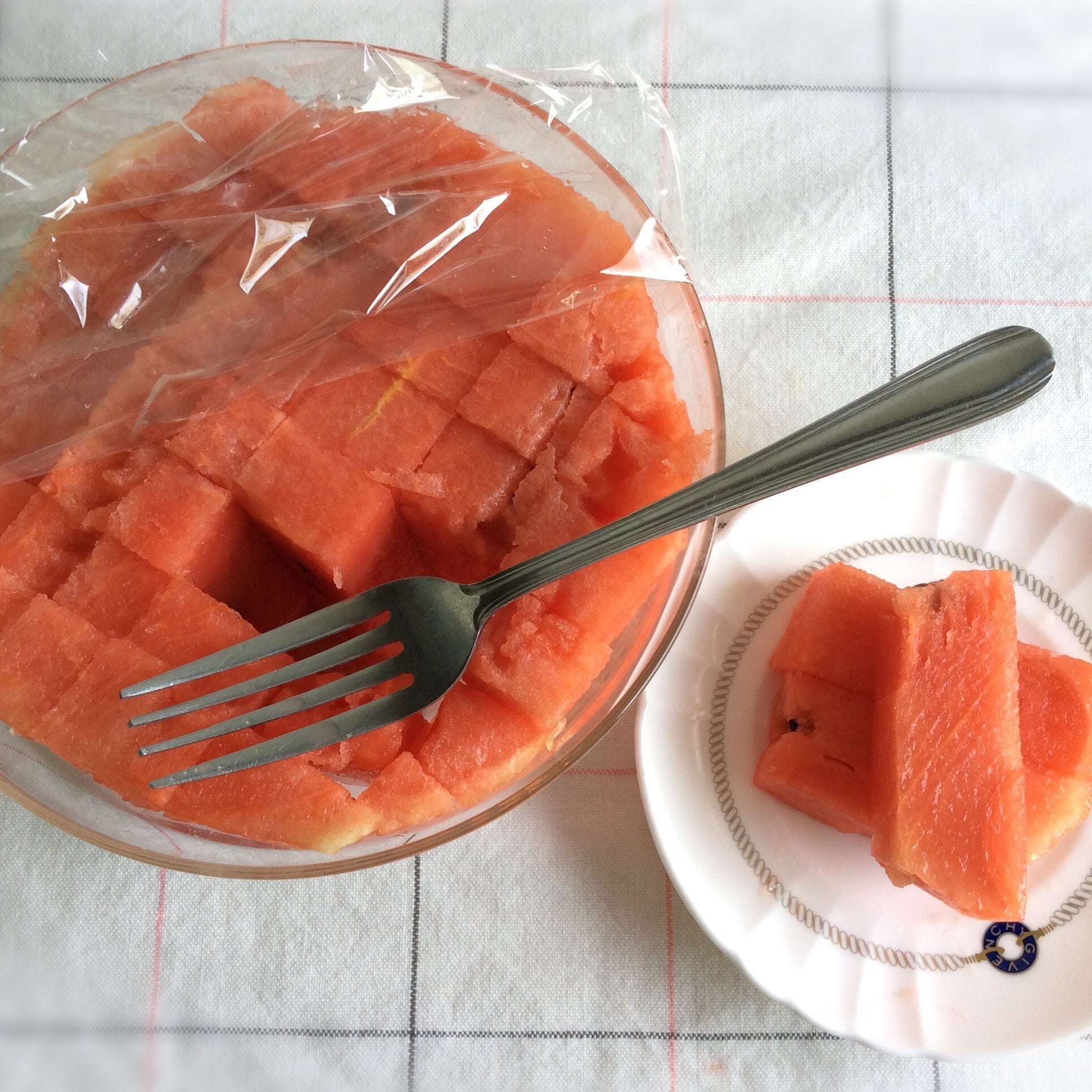 すいかスティックの切り方〜皮なし編〜 詳しい作り方 01 半分切ったすいかの皮を削ぐようにむく。 02 まず輪切りのようにカット。 03 次は直角に。 04 ボウルをかぶせて、ひっくり返す。 05 ボウルにすっぽりおさまったカット済みすいか。ラップをかけて冷蔵庫で保存。好きなだけ取り出せて便利です♪ 06 皮付きタイプの切り方も、2015/8/7のペコリブログで紹介してます。 アイダ 簡単レシピ&動画さんのお料理をもっと見る