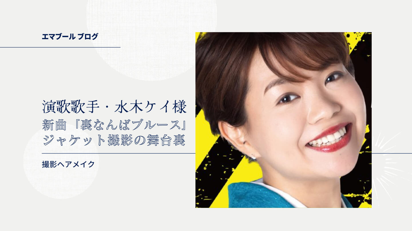 さて今回は、いつもヘアメイクをご依頼くださっている演歌歌手・水木ケイ様の新曲CDジャケット撮影にてヘアメイクを担当させていただきました。