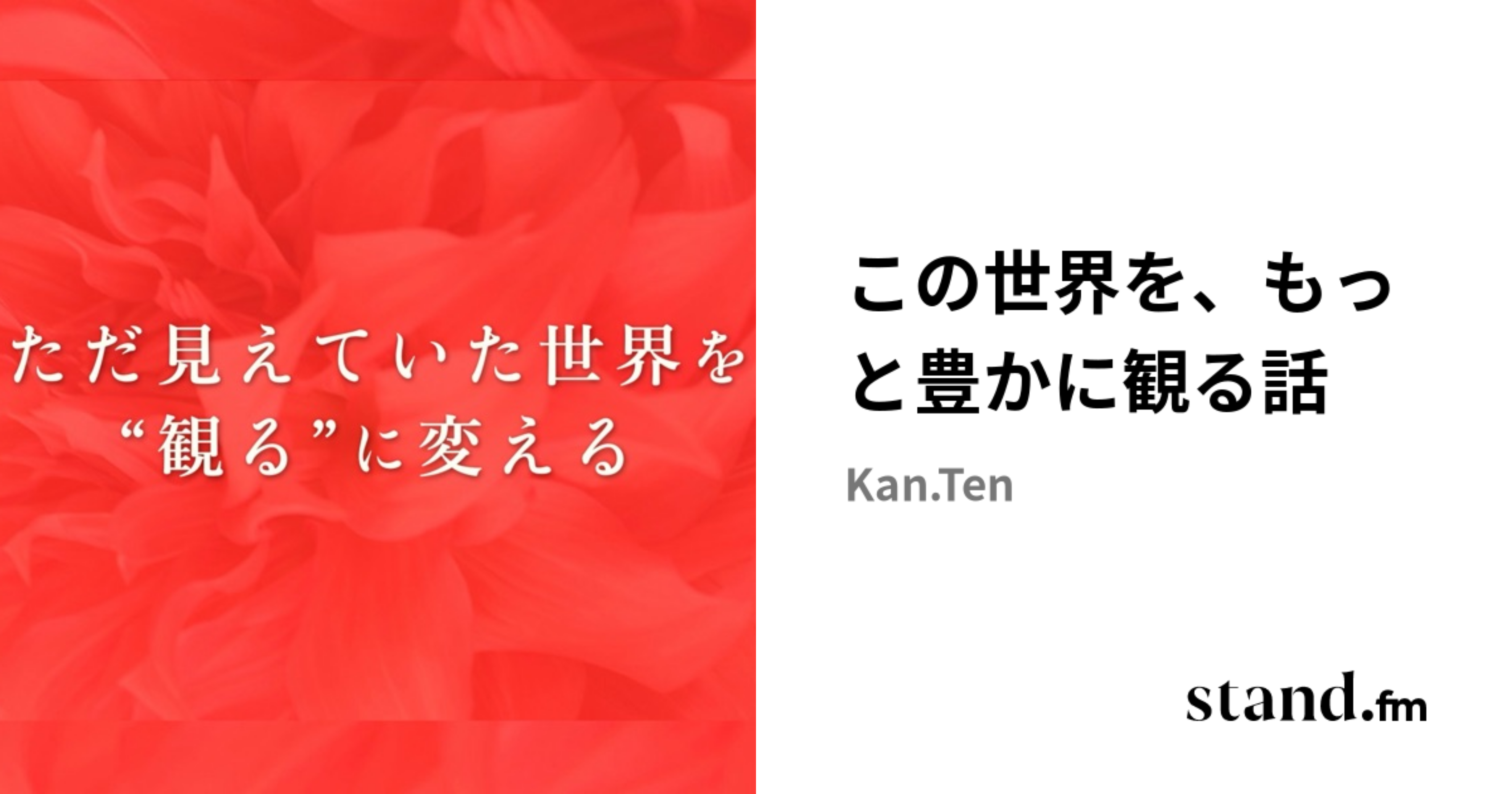 この世界を、もっと豊かに観る話 | stand.fmただ見えていた世界を、観るに変える。 note │ Hazama https://note.com/hazama_o3 この世界を つくっている構造に、触れていく。 そこに、 根源的な豊かさが そのまま在る。stand.fm