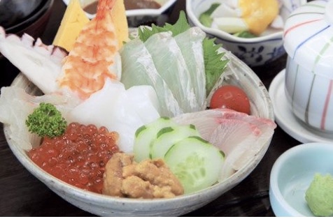 飲食業の皆さんが知恵を出して、天草の陶磁器を使用し、そして、先程の鱗がコラーゲンになる鯛、ウニ、車海老、カワハギ(天草ではスッコンベと言います)フグなど、天草の新鮮な魚介類と、有名な天草大王(鶏)を利用した丼物が店主さんが工夫されて出しておられます。