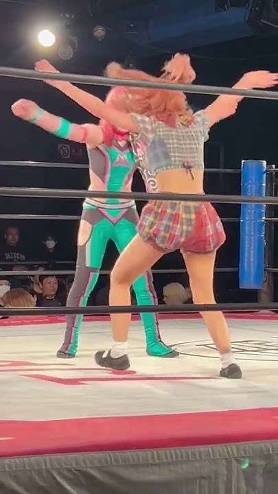 チキンウイングに捕らえられたぽむが上福のカットで反撃!