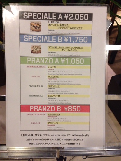 このダ・チーボのランチ価格の基本は、850円!安い!