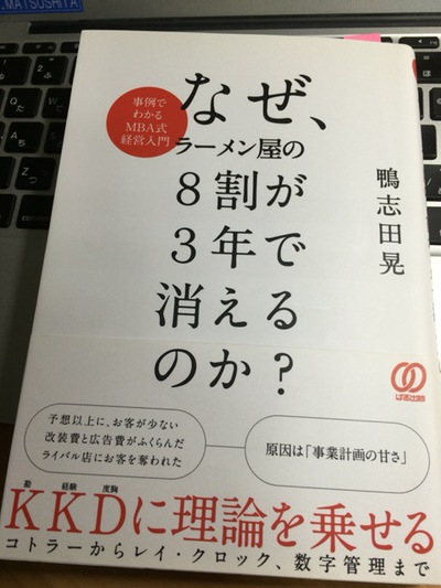 それに、このタイトル・・・現役のラーメン店の店主が、つぶれることを前提としたようなイメージの本は読まないぞ・・・まあ、つぶれそうで困っているならまだしも・・・いやいや、そう言う店主は、売上を伸ばす方法を書いた本を読むよね。