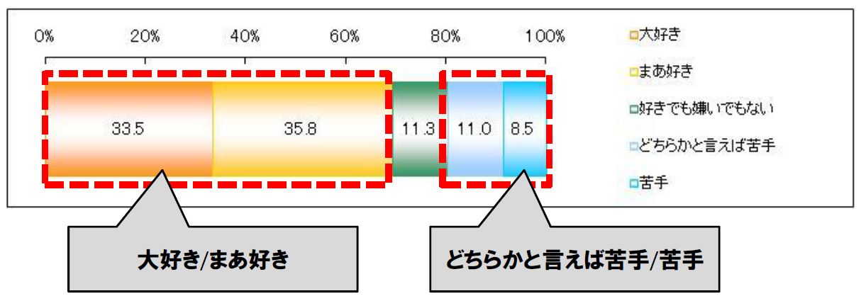 結果、「大好き」または「まあ好き」と回答した女性は69.3%に。一方、「どちらかと言えば苦手」「苦手」と回答した人は19.5%。人気の飲み方として浸透しているハイボールですが、女性の約5人に1人は苦手と感じているようです。