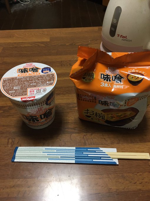 さて年越しそばという名のカップヌードル味噌を作って食べる(;´Д`)