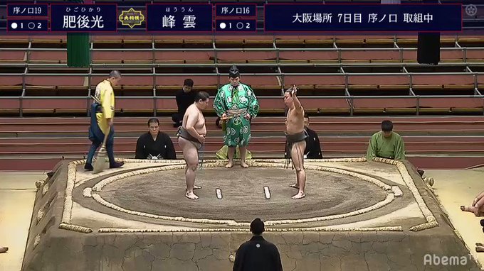 おはよーございまーす。 @AbemaTV で視聴中 gxyt4.app.goo.gl/UE6dK #アベマTVで大相撲