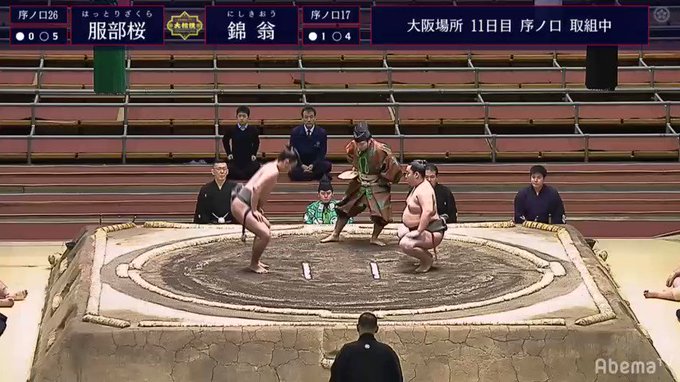 おはよーございまーす。 @AbemaTV で視聴中 gxyt4.app.goo.gl/r55v4 #アベマTVで大相撲