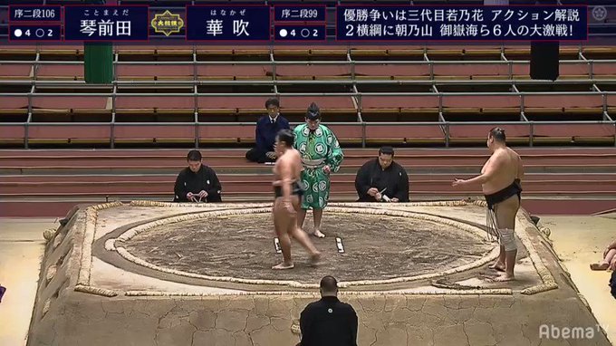 おはよーございまーす。 @AbemaTV で視聴中 gxyt4.app.goo.gl/hR7AB #アベマTVで大相撲