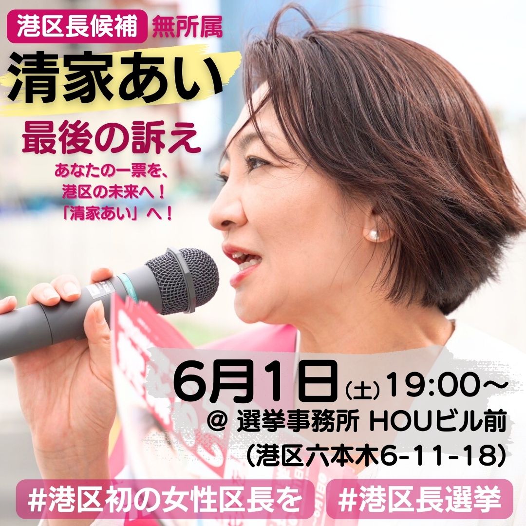 【港区長選挙🎤6月1日(土)最終戦・19:00〜最後の訴え(マイク納め)のご案内】